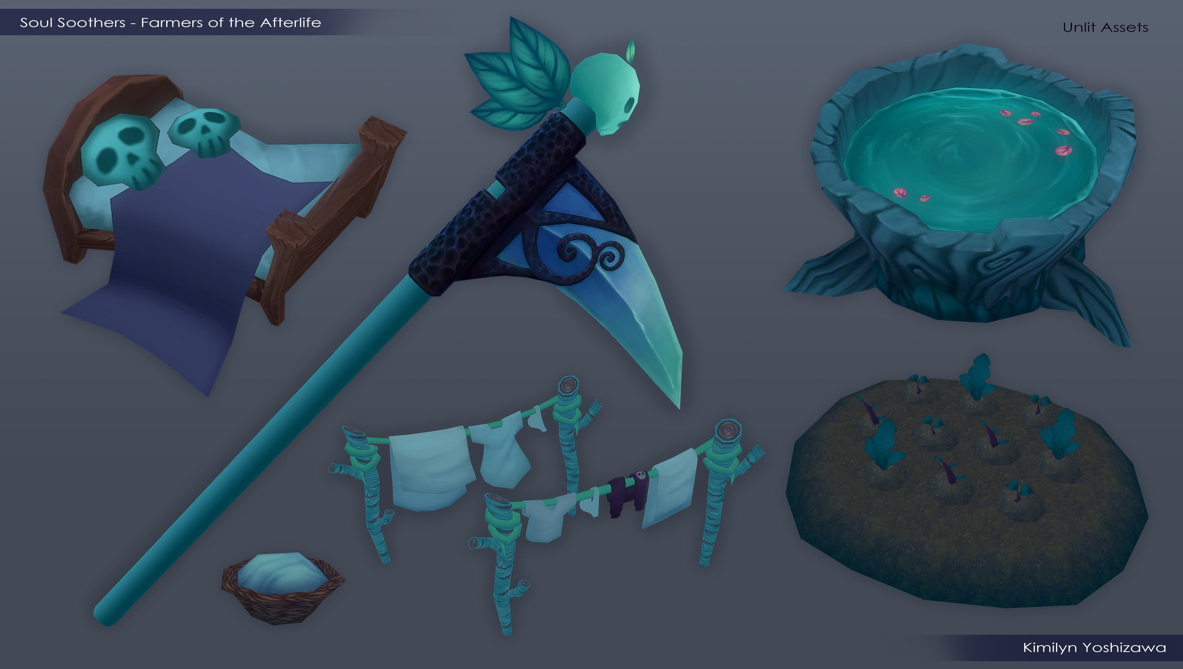 Soul Soothers is a Harvest Moon type of farm simulation game re-imagined to take place in the spirit world, where you plant human souls and help them cross over into the next life instead of planting fruits and vegetables for consumption. It's whimsical, heartwarming, and perhaps just a tad bit spooky!